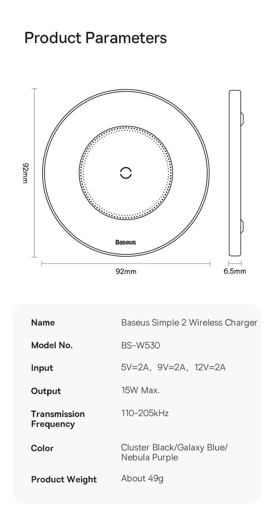 Product Name: Baseus 15W Wirelss Charger (Updated Version)