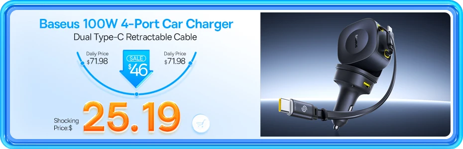 Product: Baseus PrimeTrip VR2 Car Charger with Retractable Cable C+C 30W