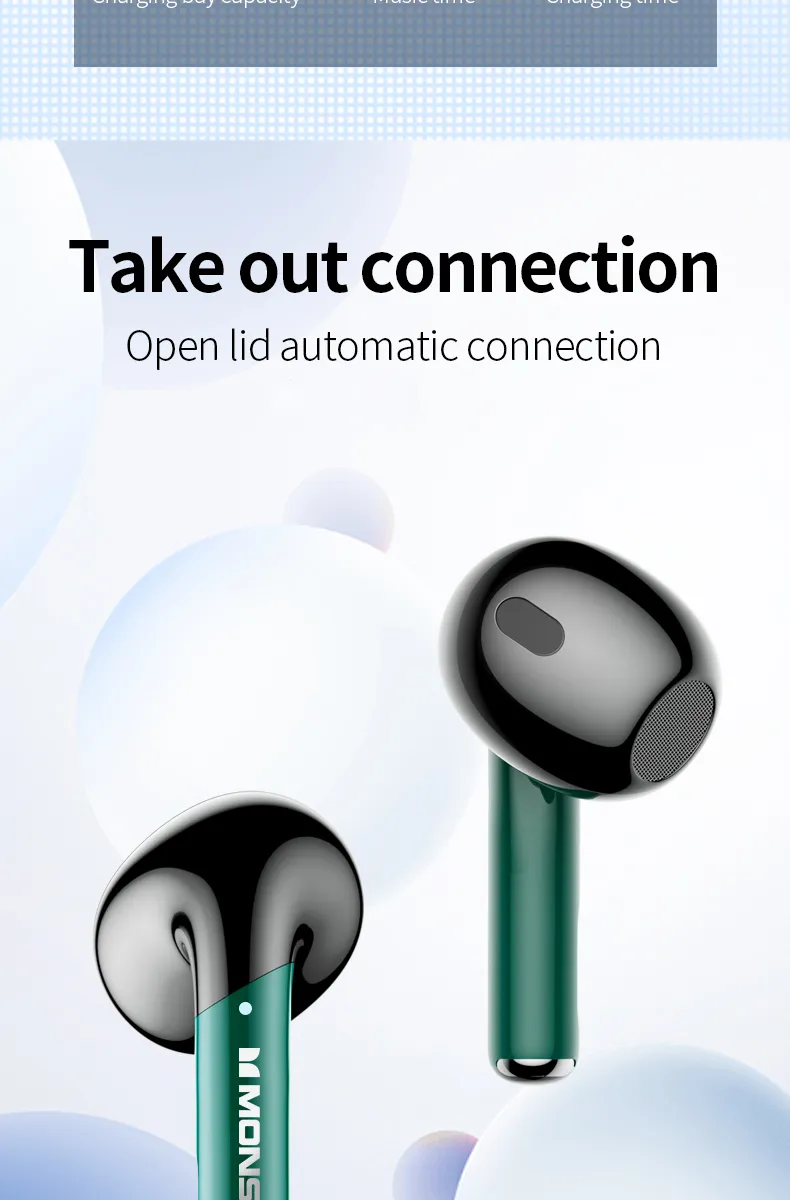 After opening the cover of the charging case, take out the headphone to start automatically pair and connect;