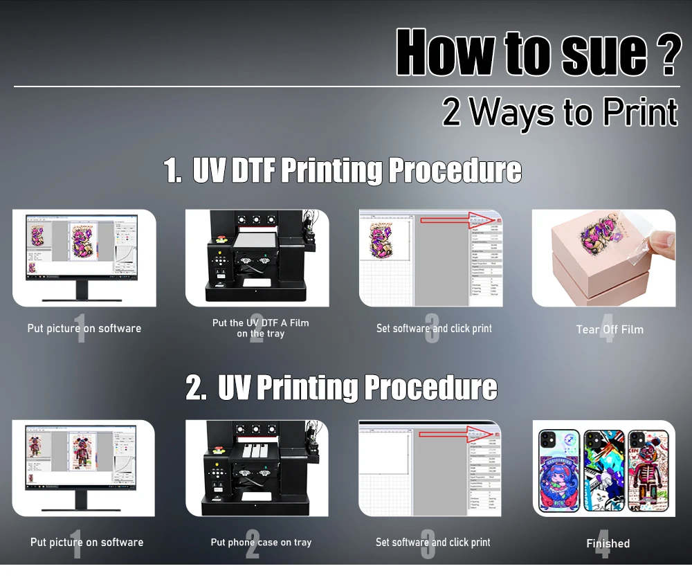 4.2500ML UV INK + 500ML Varnish+5.UV DTF Film A 50PCS Film B 50 M +6.Laminating machine