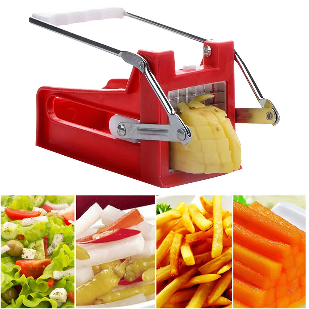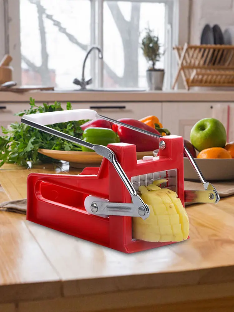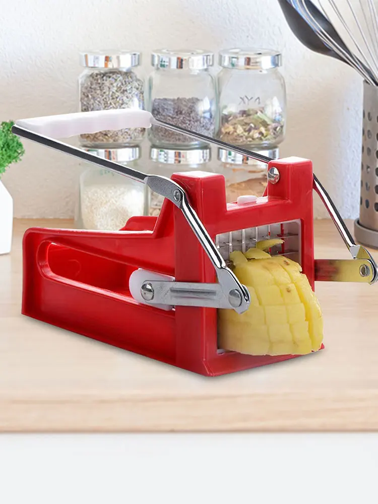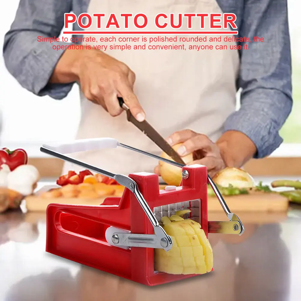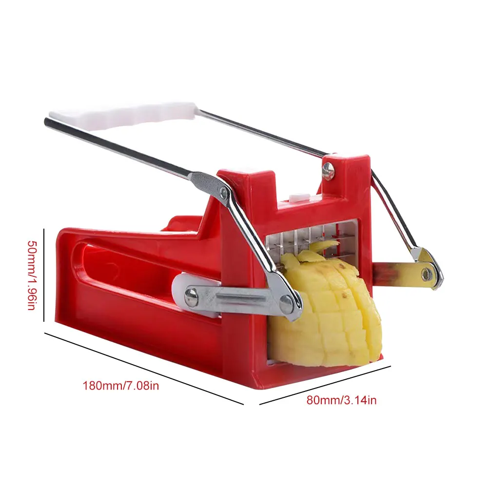 Feature: 1. Minimalist Design: This potato vegetable slicer chopper features a sleek and modern design, combining metal and plastic for a stylish look that adds a touch of sophistication to your kitchen. 2. and Attractive: Crafted with thickened ABS plastic and metal, this french fry cutter is not only visually appealing but also odor-free, eco-friendly, and built to last. It ensures both durability and aesthetics in one package. 3. Easy Operation: The smooth and refined edges make it easy and convenient to use. With potato dicer slicer machine's user-friendly design, anyone can effortlessly create perfect potato fries with minimal effort. 4. Versatile and Efficient: This commercial vegetable chopper is not limited to just potatoes. It can also be used to cut other vegetables, such as carrots or zucchinis, offering versatility in your cooking options. Save time and effort by quickly and uniformly cutting your favorite ingredients. 5. Safe and Convenient: Designed with safety in mind, this manual potato slicer ensures a secure grip while protecting your hands from potential accidents. Its compact size makes it easy to store when not in use, saving valuable counter space. Specification: Type: Fruit & Vegetable Tools Origin: Mainland China Certification: CE / EU Material: ABS+PP+201 Stainless Steel Blades Product Dimensions: 180.00x80.00x50.00mm/7.09x3.15x1.97inch Weight: 437g Color: Red Main Purpose: Conveniently and safely cuts potato fries for lazy individuals Product Highlights: Professional potato fry cutter that ensures convenience, safety, and uniformity in every cut Note: 1. Due to the different monitor and light effect, the actual color of the item might be slightly different from the color showed on the pictures. Thank you! 2. Please allow 1-2cm measuring deviation due to manual measurement.
